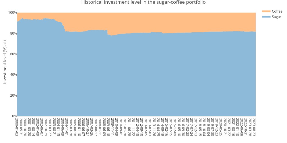 \[r_{p,t}\sim N(\bar{P}_{avo,s,t},\sigma(P_{avo,s,t}))\] El primer régimen (\(s=1\)) corresponde a un régimen de “calma” o baja volatilidad, y \(s=2\) a uno de “turbulencia” o alta volatilidad. Con esta suposición y a través de modelos de cambio de régimen de Markov de dos regímenes, utilizamos la siguiente regla de cobertura con la probabilidad pronosticada \(\xi_{s=2,t+n}\) de estar en el régimen de “turbulencia” en \(t+n\):